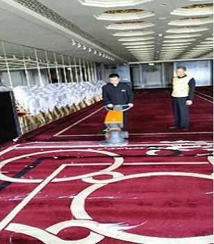5、干泡刷洗:用装有打泡器、地毯刷的单盘扫地机,以干泡刷洗地毯。等清洁剂对地毯产生作用一会后,在重复刷洗工作。